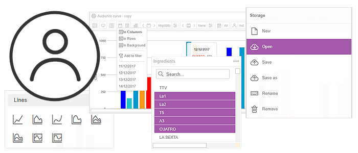 For instance, in a weekly audience graphic by channel we can drill down to see why there is a peak in one day's audiences, and move to a top programs report. There, if we are interesed in one specific program, it is possible to drill down an show the audience by target of this program.